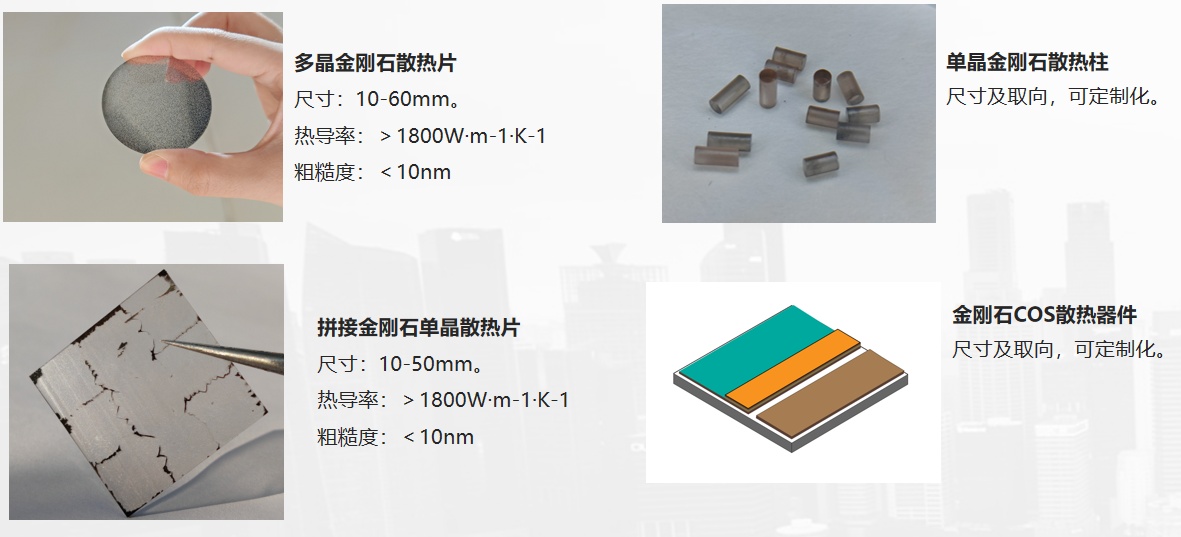 碳索芯材基于国际领先的MPCVD设备与技术,致力于制备大尺寸、高品质的金刚石高端应用产品,展现出强大的技术实力和市场竞争力。碳索芯材的金刚石产品系列丰富多样,主要包括金刚石热沉片及散热元器件、金刚石光学窗口材料和器件、刀具以及培育钻石等。这些产品在半导体、航天航空、超硬材料、医学、光学、光伏、新能源等多个领域拥有广泛的应用前景,为各行业的科技进步和产业发展提供了有力的支撑、/span>