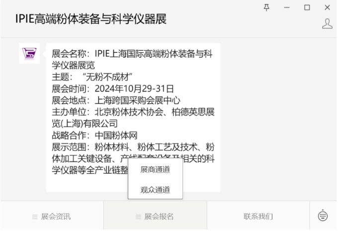 点击“IPIE高端粉体装备与科学仪器展”公众号界面:/span>