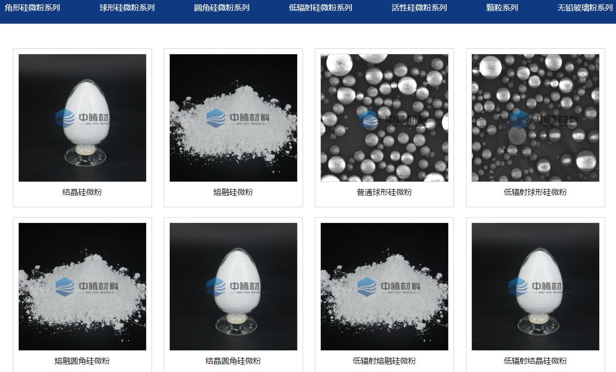 ?001年公司首座工厂投产伊始,一直致力于二氧化硅材料性能提高的研发和生产,公司产品分为结晶型和熔融无定型两大类;以角形硅微粉系列、球形硅微粉系列、圆角硅微粉系列、低辐射硅微粉系列、活性硅微粉系列、颗粒系列和无铅玻璃粉系列为主营产品,主要用于大规模集成电路、覆铜板、环氧模塑料、电子灌封胶、电气绝缘部件、高温石英技术陶瓷、光伏坩埚,熔模铸造、耐火材料、有机硅、涂料、胶黏剂、热界面材料、航空航天及石油等各种领域,已经稳定销售于国内及全球二十多个国家和地区、/p>