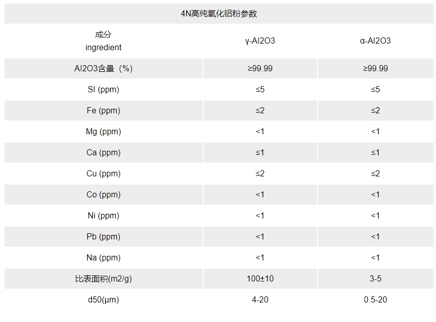 4N氧化铝可用作荧光粉原料、研磨介质等。其具有相对纯度高、强度大、耐高温、耐高压、耐强酸碱腐蚀、热震稳定性好、化学性能稳定等特点、/p>