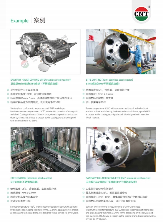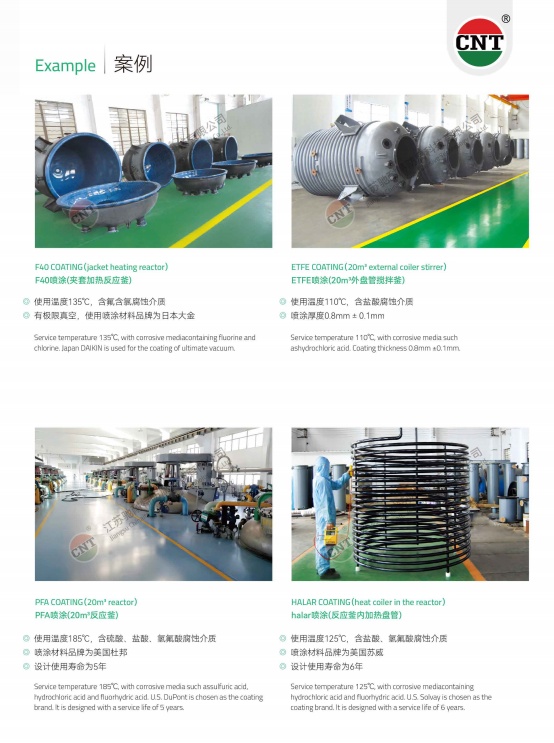 江苏驰耐特防腐科技有限公司为总公司,占地面积?万平方米,主要经营PFA喷涂、F46喷涂、F40喷涂、halar喷涂、PVDF喷涂,钢衬四氟,钢衬PFA。为了更好的服务新老客户,总公?0年期间先后成立了三家分公司。分别主营中低端氟塑料衬里、半导体氟塑料衬里和压力容器设备制造、/p>