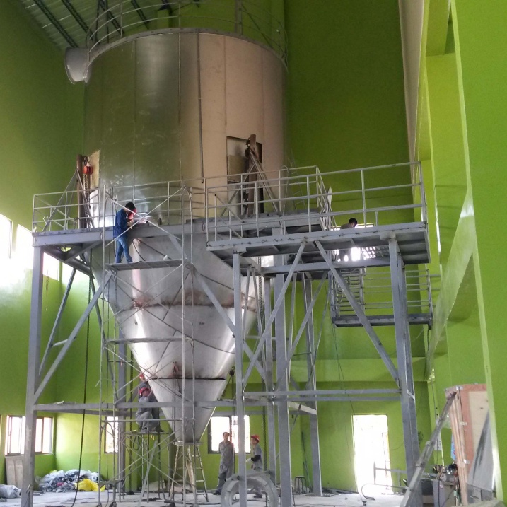 环境空气通过过滤器进入加热装置后,进入干燥室顶部的热风分配器,热空气呈螺旋状均匀进入干燥室。同时料液由供料泵送至干燥室顶部的离心雾化器,使料液喷成小的雾状液滴,使物料和热空气接触的表面积大大增加,水份迅速蒸发,在短时间内干燥成粉状产品、/p>