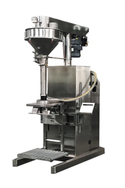 本机组由人工套袋→夹袋升降机构→立式螺旋→立袋输送机,除尘系统及控制系统组成。整个流程伴随正压、负压检测系统,整个过程由PLC、光电开关智能控制,检测报警。确保整个流程稳定,可靠,连续运行。整机采?04不锈钢材质,包装秤采用垂直给料机强制给料,通过连接法兰与上储料斗连接。主要有绞龙、切断阀门、电机、传动装置等部分组成。喂料机构主要是通过启停不同截面的螺旋以控制给料的速度。给料分为快喂料和慢喂料,快喂料可提高系统的包装速度,而慢喂料则是系统精度的可靠保证。螺旋给料机的出口处加装气动切断阀装置,可以加强物料输出的受控能?以防止喂料停止时多余物料的跌落影响系统的包装精度。该包装机适用于细粉料包装,可实现无粉尘包装车间,且称重精度非常高、/p>