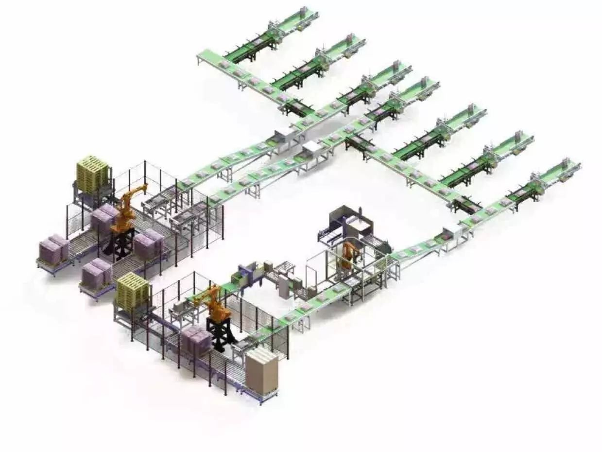 本系统由自动供袋库→自动上袋机→夹袋机构→定量包装秤→抱袋机构→导入机构→自动热封系统,除尘系统及控制系统组成?、取袋机构利用真空吸盘从袋库取袋?、自动理袋、输送→3、自动开袋→4、上袋机械手自动上袋?、夹袋器自动夹袋、开袋→6、自动称重→7、自动抱袋→8、自动导入→9、自动双封口,整个流程伴随正压、负压检测系统,整个过程由PLC、光电开关智能控制,检测报警。确保整个流程稳定,可靠,连续运行、/span>