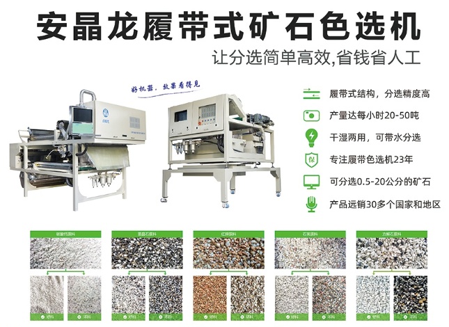 公司自主研发生产的“安晶龙”牌(Angelon)履带式智能彩色色选机已成为国内技术的领先者。广泛运用于矿石资源、食品、中药材、再生资源等众多领域,色选效果也远超国内外同类产品。安晶龙履带式色选机销往全世?0多个国家和地区,受到国内外客户的青睐、/p>