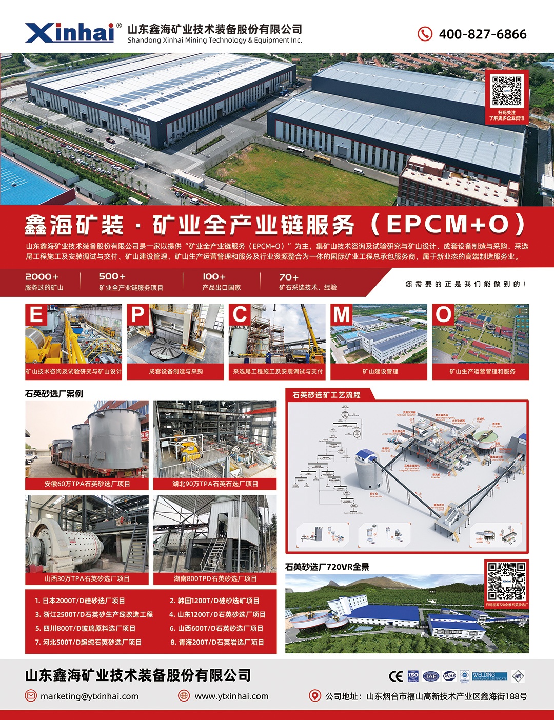 鑫海矿装致力于提供“矿业全产业链服务(EPCM+O)”,即选矿厂的“设计和研究 - 成套设备制造与采购 - 调试和交 - 矿山管理 矿山运营”,全程从选矿厂实际情况出发,量身定制,为全球矿山提供一站式、定制化选厂解决方案、/p>