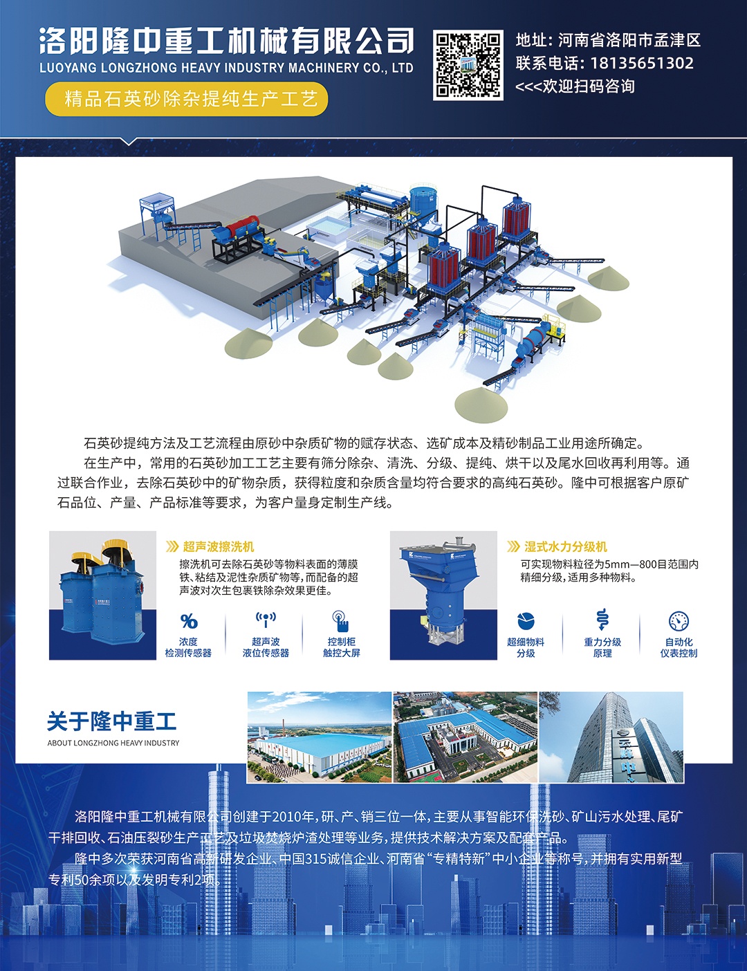 洛阳隆中重工机械有限公司(简称隆中),创建于2010年,研、产、销三位一体,主要从事智能 环保洗砂、矿山污水处理、尾矿干排回收、石油压裂砂生产工艺、垃圾焚烧炉渣处理等业务,提供技 术解决方案及配套产品。所有产品均通过ISO9001:2008国际质量体系认证、欧盟CE认证和海关联 盟CU-TR认证,服务全?70多个国家和地区的两万多家客户、/p>