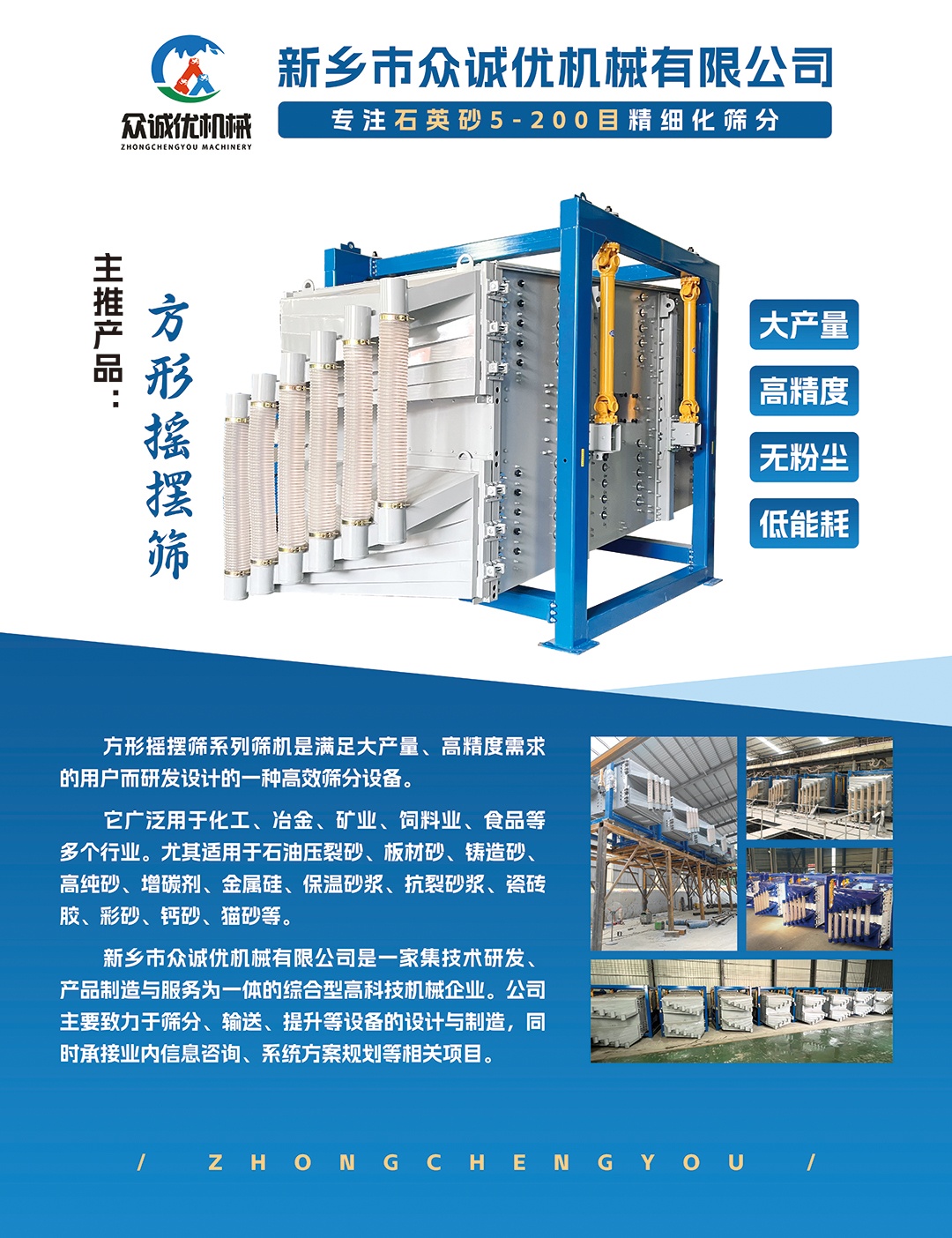 新乡市众诚优机械有限公司是一家集技术研发、产品制造与服务为一体的综合型高科技机械企业。公司主要致力于筛分、输送、提升等设备的设计与制造,同时承接业内信息咨询、系统方案规划等相关项目 我公司拥有先进的生产设备、严格的加工工艺、完善的检测手段,以及良好的企业信誉。一直致力于新产品的开发与设计,加工工艺的创新与改良,从而让产品设计更合理、制作更精良、运行更稳定,提供给客户更好的设备体验,满足用户的不同需要 公司自成立以来,始终坚持“诚信、优质、专注、高效”的原则,以优质的产品质量,合理的产品价格,完善的售后配套服务,受到了客户的一致好评! 我们的产品广泛应用于化工、食品、医药、冶金等行业,产品远销国内外多个国家和地区。本公司以解决客户需求为己任,竭诚期待着与您的合作!