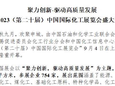 金秋九月,欢聚申城。由中国石油和化学工业联合会主办,中国国际贸易促进委员会化工行业分会和中国化工信息中心共同承办的?023(第二十届)中国国际化工展览会??日在上海新国际博览中心隆重开幕。本届展