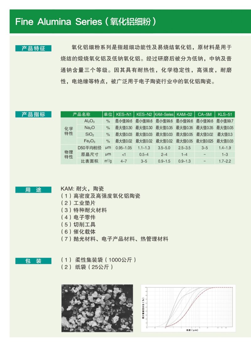 产品特征氧化铝细粉系列是指超细功能性及易烧结氧化铝,原材料是用于烧结的煅烧氧化铝及低钠氧化铝。经过研磨后被分为低钠,中钠及普通钠含量三个等级。因其具有耐热性,化学稳定性,高强度,耐磨性,电绝缘等特点,被广泛用于电子陶瓷行业中的氧化铝陶瓷、/span>