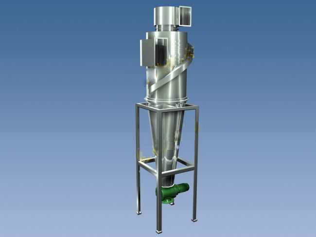 气流在做旋转运动时,气流中的粉尘颗粒会因受离心力的作用从气流中分离出来。利用离心力进行除尘的技术称离心除尘技术。利用离心力进行除尘的设备称为旋风除尘器。主要由筒体、锥体、进气管、排气管和卸灰管组成、/p>