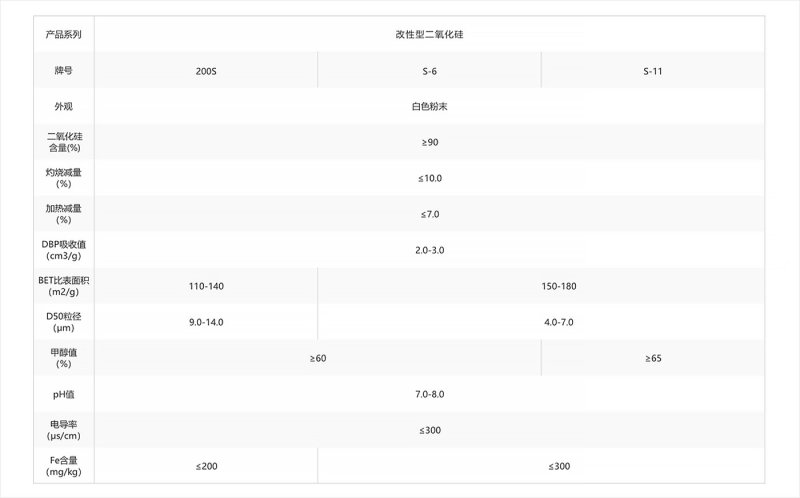 本系列产品经有机物复合改性精制而成,产品具有优异的疏水和分散性,比表面积高,水份含量低。在中、高端硅橡胶的应用中具有优良的分散及补强性能;应用于消泡剂中具有优良的分散、吸附、增稠和防沉降作用、/p>