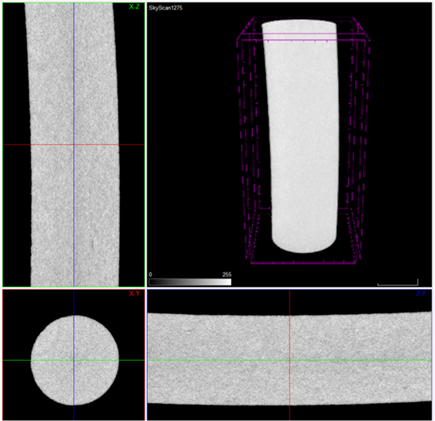 左:钢屑球磨3D成品断层成像