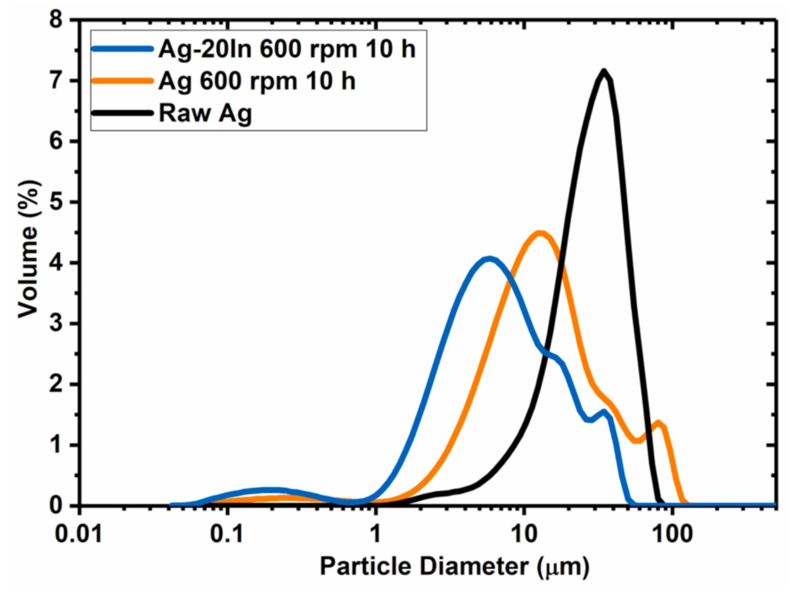 经过研磨之后的Ag-In与Ag,粒径明显均得到明显细化、/p>