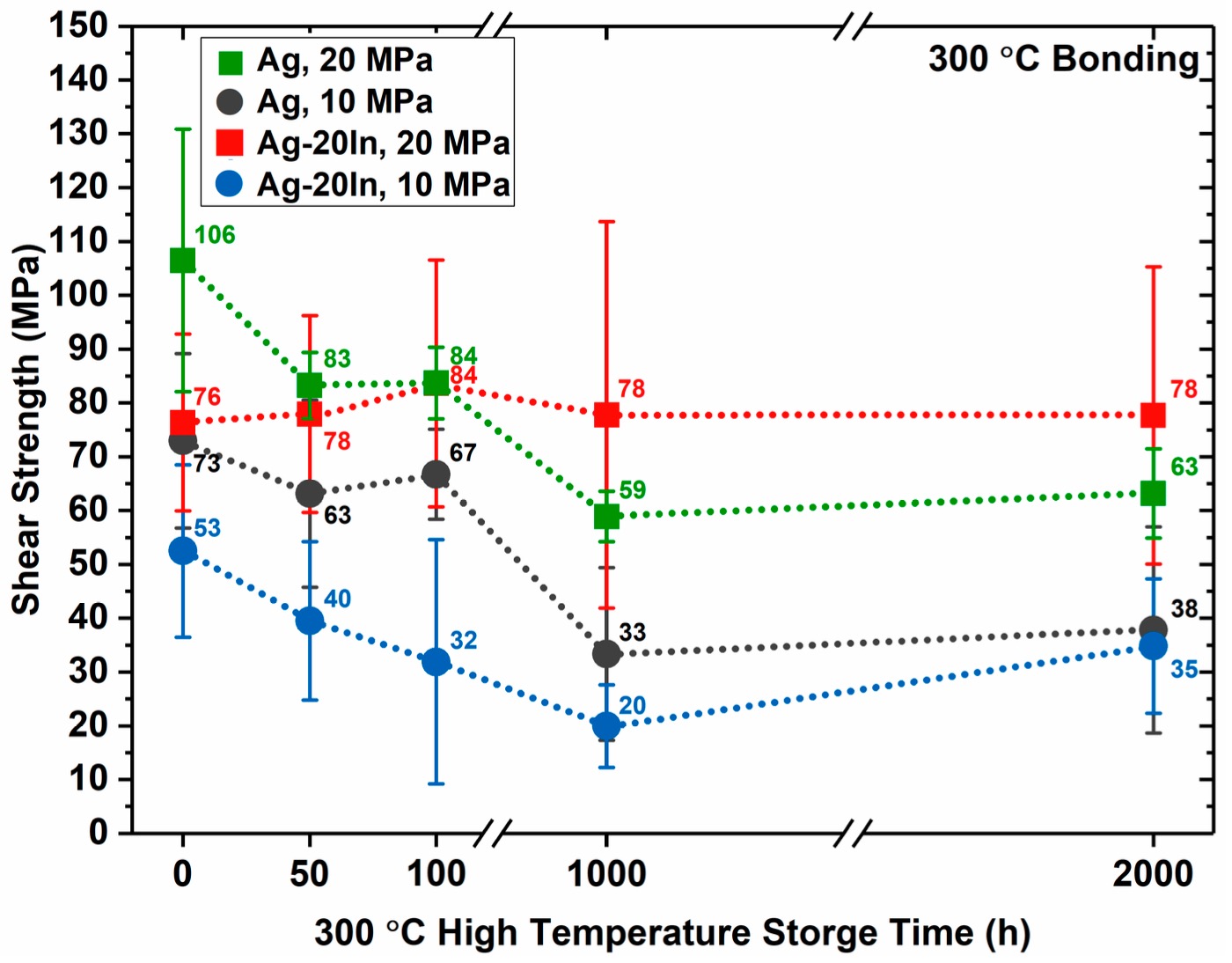 银铟合金具有更优的熔融态流动性,可填充微小间隙,减少界面空洞;且由于铟的加入,可抑制银的硫化/氧化,在高温高湿环境中具备更强的抗腐蚀性、/p>