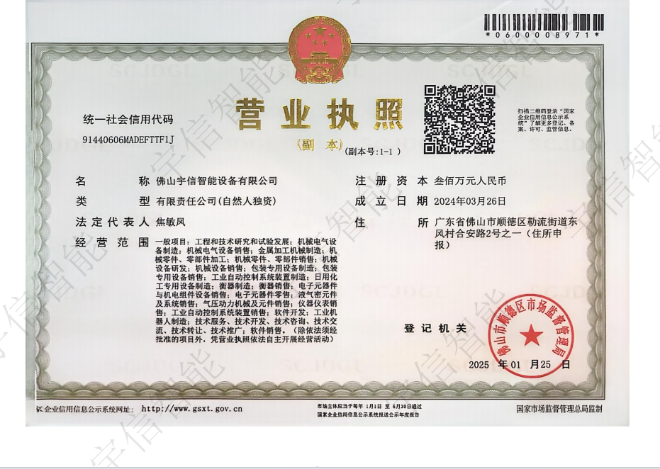佛山宇信智能设备有限公司企业类型