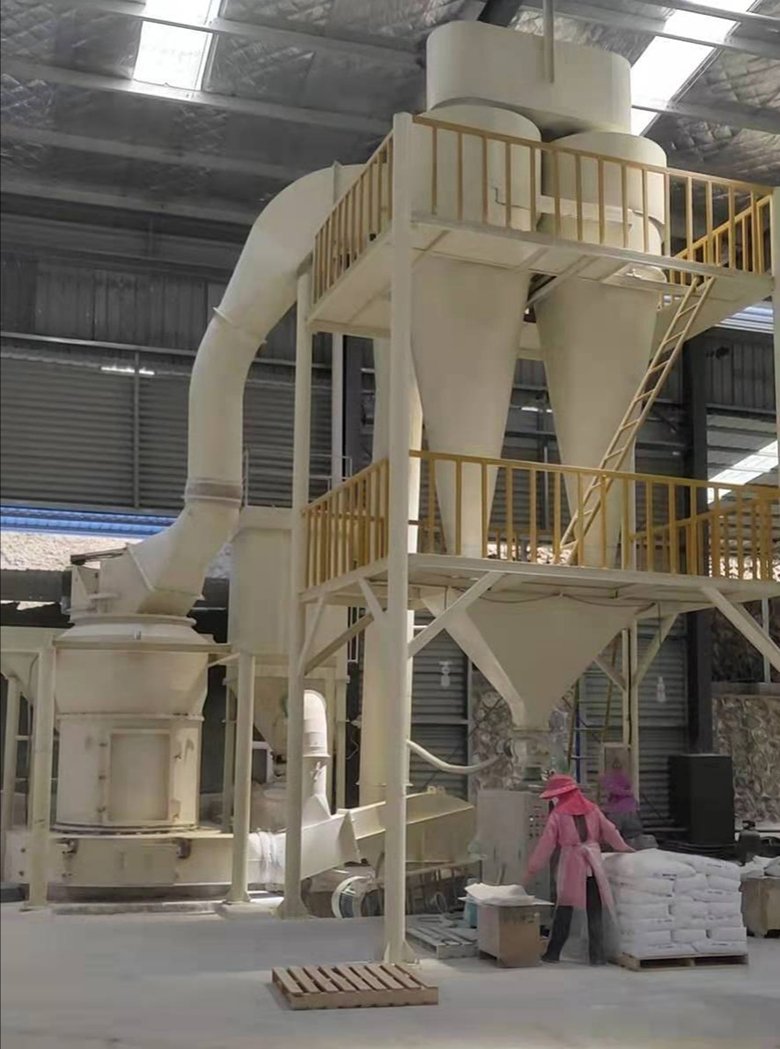 需要加工物料进入主机研磨室后,由于主轴旋转时离心力的作用,磨辊向外摆动,紧压于磨环,铲刀将物料铲起送至磨辊与磨环之间,随磨辊的滚动而达到研磨、粉碎目的。物料经过研磨后,粉末随着鼓风机循环风经过分析机进行分逈/span>,细度过粗的物料落回研磨室重磨,合格细粉则随气流进入旋风集粉器,经出粉管排出即为成品。气流通过旋风集粉器后又进入鼓风机形成闭路循环,从而使机器连续正常工作。余风则可以通过余风管进入除尘器经净化后排出机外、/span>
