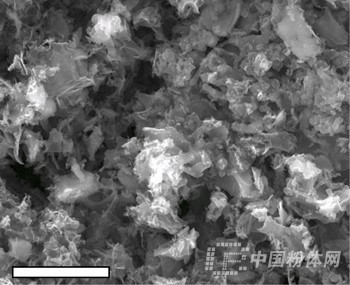 赖斯大学的扫描电子显微镜显示的钴浸渍金属氧化?激光诱导制备石墨烯。这种材料是替代铂质或其他贵金属作为燃料电池催化剂的理想材料。图片比侊 10微米。图片来溏莱斯大学、br />