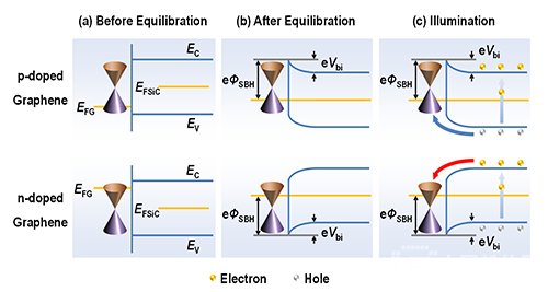 ?. 石墨烯自掺杂导致形成石墨?SiC异质结双极载流子转移通道的能带结构示意图