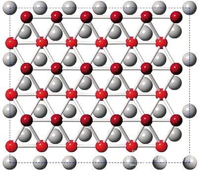 硼烯在银表面的结构示意图(红色,暗红色表示硼原子的起伏)