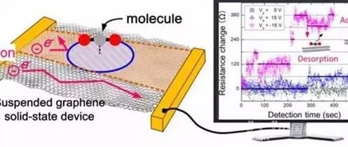 该研究团队研发出的石墨烯传感器在通电后,可使单个的二氧化碳分子一个一个吸附到石墨烯材料上,并在分子水平上检测其浓度