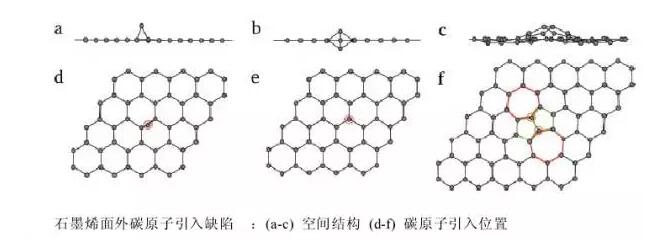 面外杂原子引入缺陷:在化学气相沉积或者强氧化的条件下,由于过程中使用了金属元素或者含氧的氧化剂,石墨烯表面不可避免引入了金属原子或者含氧官能团等。这些杂原子以强的化学键或者弱的范德华力与石墨烯中碳原子发生键合,构成了面外杂原子引入缺陷、/span>