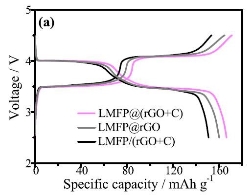 电化学测试发现该材料存在两个电压平台,分别是3.4-3.6V?.0-4.1V,分别对应着Fe2+/Fe3+和Mn2+/Mn3+两个反应。容量测试发现,该材料再次经过碳包覆后其容量可达166mAh/g,由于该材料良好的导电性,使得该材料获得了良好的倍率性能,在0.1C 0.2C 0.5C 1C 3C 5C 10C?0C的倍率下,材料的比容量分别达到?66 156 136 126 115 107 101 90 mA h /g,该材料的能量密度也达到?12Wh/kg,这要高于钴酸锂材料,在1C倍率下循?00次,该材料的容量保持率达?2%,表现出了优异的循环性能