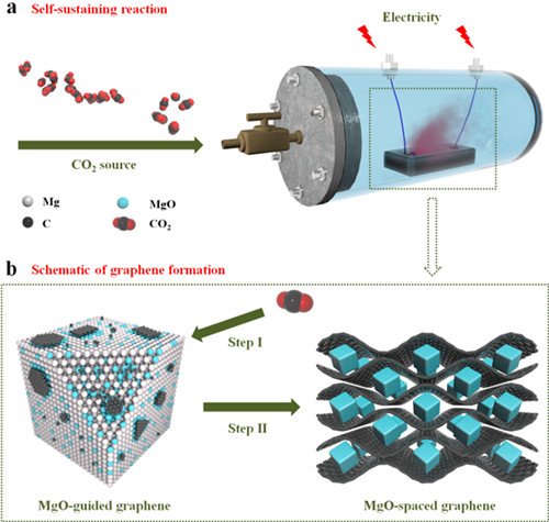 中国粉体网讯日前,中国科学院电工研究所马衍伟研究团队在石墨烯量化制备及高性能石墨烯基超级电容器方面取得进展,提出以二氧化碳为原料,采用自蔓延高温合成技术,成功实现了兼具高导电性和高比表面积石墨烯粉体的快速、绿色、低成本制备。相关研究结果已发表于国际期刊《先进材料》(Advanced Materials, 2017, 1604690),并申请了国家发明专利和PCT专利