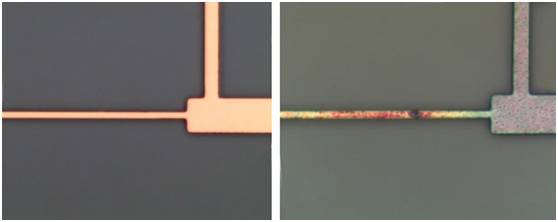 电迁移导致的电路中断:当铜导线很窄时,大电流可能会使原子发生迁移而导致中断、/p>