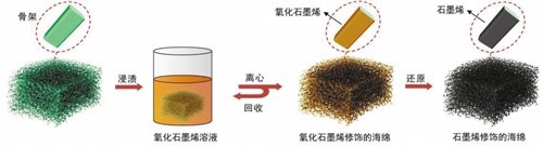 石墨烯包裹的海绵制备过程示意图、/span>