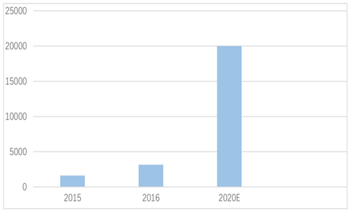 中国石墨烯产业联盟统计显示,中国石墨烯生产企业已经从 2015 年的300 多家增长 2016 年的 400多家,石墨烯产业规模 2015 年的 1630 万美元增长到2016 年的3842万美元,发展态势喜人。随着石墨烯量产的解决和石墨烯下游的拓展,产业联盟预计中国 2020 年石墨烯市场规模将达 2 亿美元,占世界市场规模超过一半,成为全球最大的石墨烯消费国家、/p>