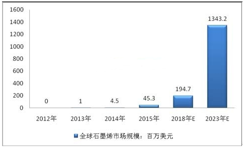 2012-2023年全球石墨烯市场规模预测