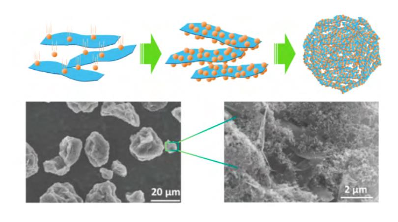 针对石墨烯粉体难以在其他材料中进行均匀分散的行业难题,研究者们设计了具有高导电性极易分散的石墨?碳黑复合导电剂粉体(石墨烯含量在50%以上),利用碳黑的阻隔作用,可实现石墨烯在电极中的均匀分散,从而构建三维导电通路,有效提升了超级电容的性能,其其制备原理及结构表征如图所示、/p>