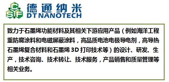 2017?2?2日,江苏金陵特种涂料有限公司和青岛德通纳米技术有限公司共建“石墨烯特种涂料联合工程技术研究中心”成功签约。双方将联手申请承担工信部关于“打造石墨烯涂料示范产品”的产业化项目,共建石墨烯特种涂料联合工程技术研究中心,合作开发石墨烯应用技术,同时在金陵涂料建立“石墨烯特种功能涂料产业化示范生产基地”,打造石墨烯涂层制品产业链,建立完善的产业标准体系、/p>
