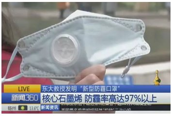 2016年,东南大学海归教授孙立涛带领学生们研发的“石墨烯基口罩”第一批产品面世,并且在东南大学举行了发布会,据悉,之前经第三方测试,这种口罩对PM2.5的去除率高达97.1%、/p>