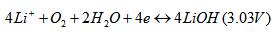 3500Wh/kg,是现有锂电池系列中最高的一类。锂空气电池在非水系电解液中主要通过以下可逆循环反应释放能量: