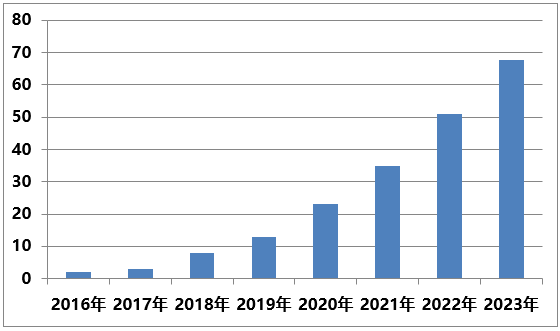 2020-2030年石墨烯在生物医药行业的市场规模预测(亿元)