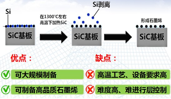 外延生长法,是指在高温加热SiC单晶体,使SiC表面的Si原子被蒸发而脱离表面,剩下的C原子通过自组形式重构,这样就可以得到基于SiC衬底的石墨烯、/p>