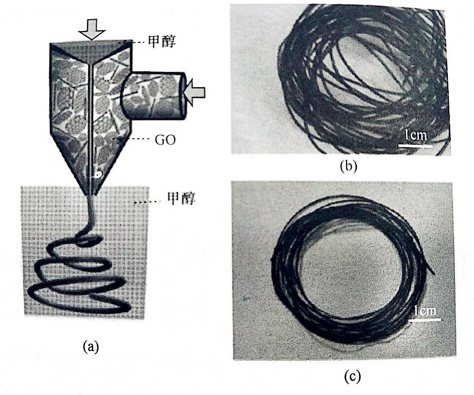 湿纺法是将氧化石墨烯分散在水中,经过超声分散成均匀溶液,经过离心后去除未剥离的氧化石墨烯,经浓缩后倒入纺丝机储液罐,设置适当的空气隙和凝固浴,在氮气压力下经过喷头可收集湿的氧化石墨烯凝胶纤维,自然晾干即可、/p>