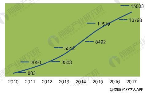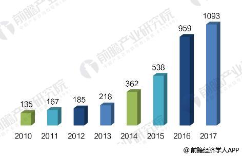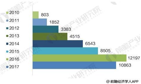 图表2?010?017年中国石墨烯新增企业数量统计(单位:家)