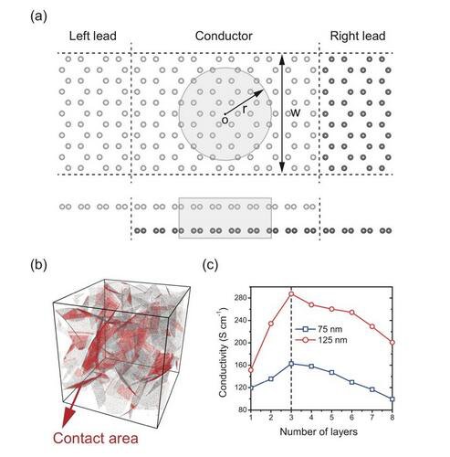 中国科学院力学研究所副研究员刘峰与王超合作提出了一种理论框架,系统研究了三维石墨烯泡沫的导电性能,并在该体系中发现了电导率极大现象。在该理论框架中,导电过程被分为两个等级。第一级,即最底层,利用介观输运理论结合紧束缚模型研究石墨烯薄片间的电导。第二级,通过分子动力学模拟研究三维石墨烯泡沫材料的网状结构,并提取平均接触面积、平均接触点密度等几何特征。结合这两方面信息即可理论计算石墨烯泡沫材料的电导及电导率、strong>该研究发现石墨烯泡沫材料存在电导率极大现象(即随石墨烯薄片层数的增加,电导率先增大后减小),并进一步揭示了该现象的物理机制、/strong>