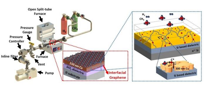 美国芝加哥Illinois大学(UIC)和SunEdison半导体公司的研究人员开发了一种工艺流程,称为‛strong>碳自由基的晶界扩敢/strong>”,用于有效地在任何半导体或绝缘固体衬底上进行石墨烯的无迁移生长。在这里,甲烷(或其他碳源)分子在真空和加热炉中与衬底上沉积的金属解离。甲烷解离产生的碳自由基通过金属的晶界扩散,然后在金属和底层衬底的界面上形成石墨烯。这种生长策略适合用于工业应用中大规模石墨烯的生产、br/>
