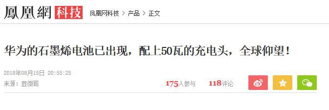 而华为的“石墨烯电池”则据说仅用于提升锂离子电池散热效果。电池电极上并没有使用石墨烯材料提高导电性。它的主要方法是在电解液中加入特殊添加剂。采用石墨烯实现锂离子电池与环境间的高效散热。华为宣传的高温长寿命石墨烯基锂离子电池其主要特色是借助以石墨烯为基础的新型耐高温技术将锂离子电池上限使用温度提?0℃,而使用寿命则是普通锂离子电池?倍、/p>