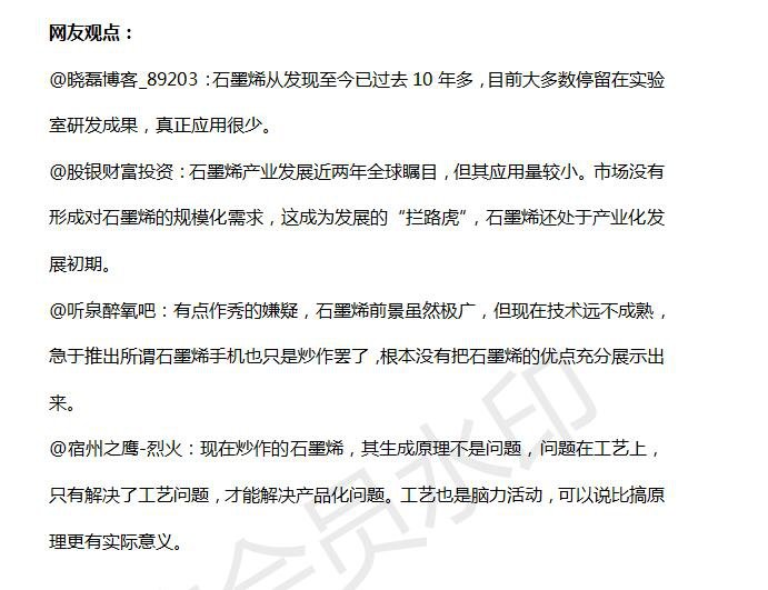 然而,在这些光环下面,却充斥着大量宣传炒作的成分。有专家指出,石墨烯的强度、透光性、极强导电性、导热性等特性,只是单原子厚度石墨烯的微观性能,而当下为石墨烯概念炒作,却将石墨烯的微观性能夸大为宏观性能、/p>