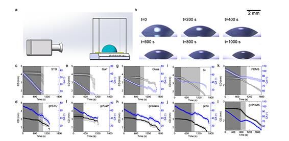 近期,中国科学院物理研究所/北京凝聚态物理国家研究中心表面物理国家重点实验室博士黄永峰、陆俊(磁学国家重点实验室)和研究员孟胜在前人工作的基础上通过研究水分子与石墨烯覆盖衬底的相互作用发现(图1):仅一个原子层的单层石墨烯就能有效地改变水滴的蒸发速率,而且最大的改变量可以达到近20%、/strong>他们发现其中的根本原因在于石墨烯改变了水滴在衬底上的接触角,从而改变与衬底接触的三相线的长度。比如,在亲水衬底上,石墨烯增大了水滴的接触角因而减小了三相线的长度,蒸发速率被抑制;而在疏水衬底上,石墨烯减小了接触角从而增加了三相线的长度,水滴的蒸发速率被加快、br/>