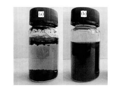 石墨烯(a)和硅烷化处理的石墨烯(b)在水中的分散性照牆br/>