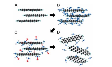 Jang等人在前期工作的基础上,进一步利用超临界乙醇和芘磺酸?1-PSA)剥离石墨,实现了石墨烯的一步法剥离和修饰。芘磺酸钠不仅能够阻止石墨烯的重新聚集,还有利于剥离的进行。研究发现随着芘磺酸钠用量的增加,石墨的剥离效率明显提高。当芘磺酸钠与石墨的碳原子比?:1时,所得单层或双层石墨烯的产量可达?0%、br/>