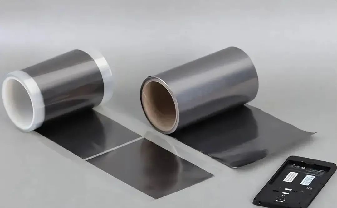 石墨散热膜一般也称“石墨片”“石墨膜”,化学成分主要是单一的碳(C)元素,是一种自然元素矿物。可以通过化学方法高温高压下得到石墨化薄膜,因为碳元素是非金属元素,但是却有金属材料的导电,导热性能,还具有像有机塑料一样的可塑性,并且还有特殊的热性能,化学稳定性,润滑和能涂敷在固体表面等等一些良好的工艺性能,石墨散热片平面内具?50-1500 W/(m·k)范围内的超高导热性能、/p>