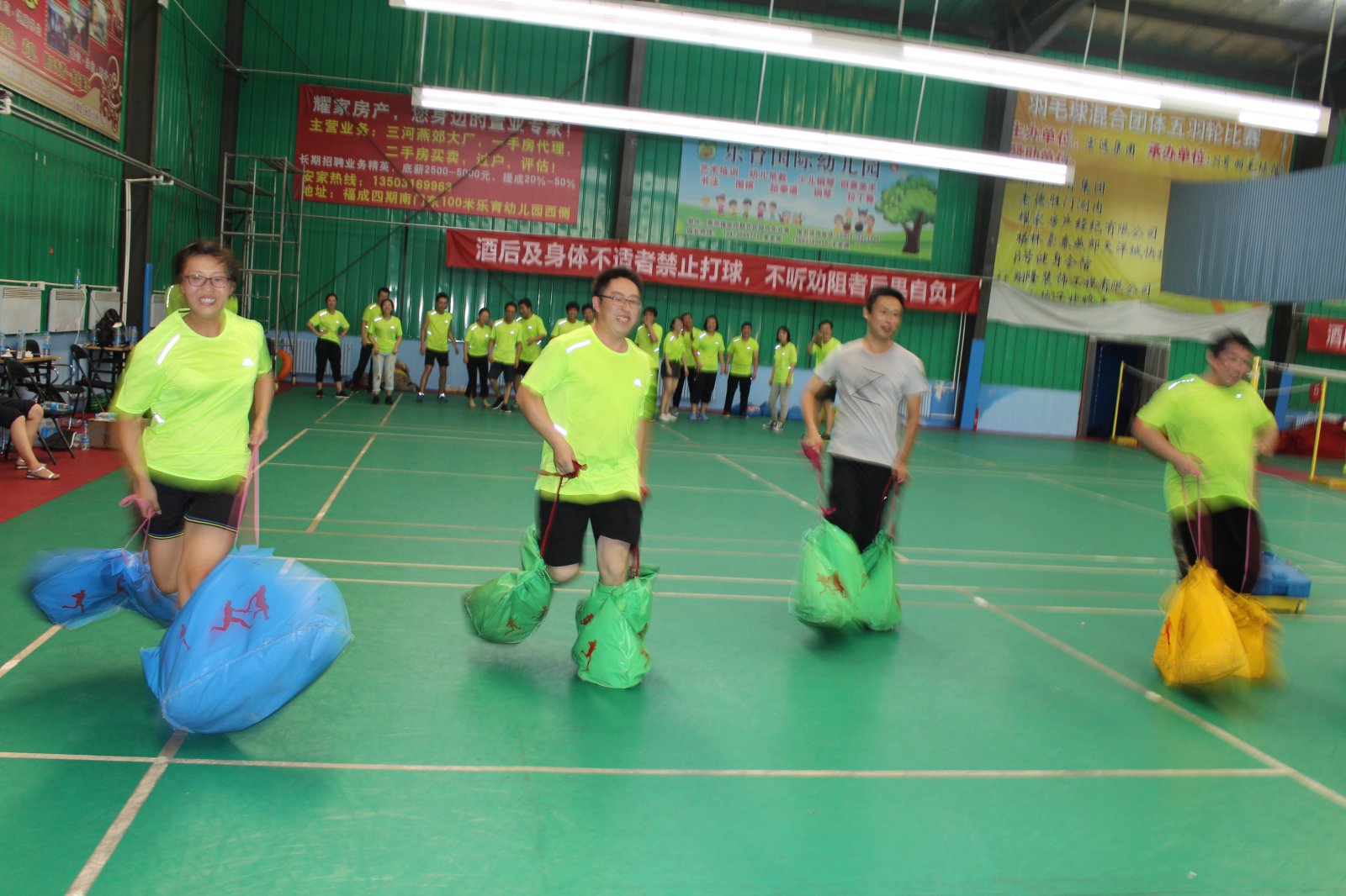 工作总结结束后,全体员工进行了羽毛球比赛和趣味运动会。球场上的英姿飒爽,运动会上的阵阵欢乐,碰碰球、快乐大脚、袋鼠运球。。。。每一个项目都是对团队默契的考验,每个部门都拼尽全力、/p>
