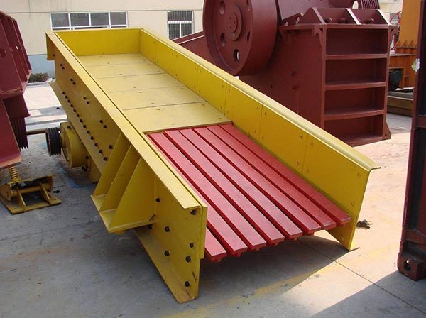 振动给料朹/span>在生产流程中用于把块状、颗粒状物料从贮料仓中均匀、定时、连续地送入受料装置。在砂石生产线中可为破碎机械连续均匀地喂料,并对物料进行粗筛分,广泛应用于冶金、煤矿、选矿、建材、化工、磨料等行业的破碎、筛分联合设备中、/span>